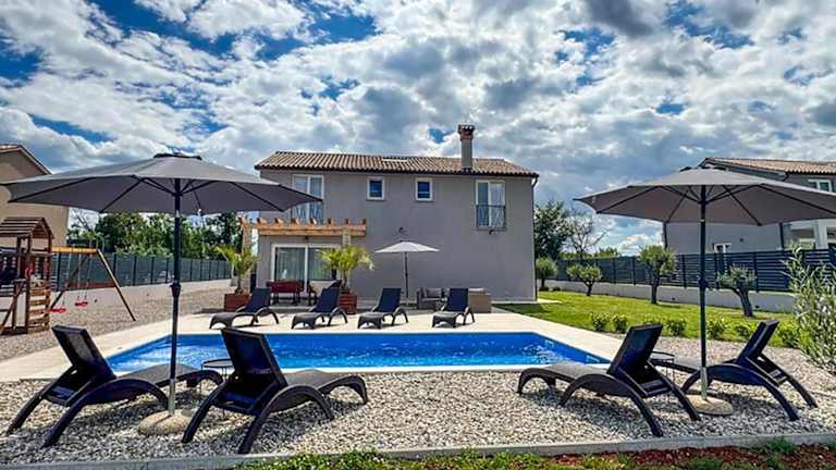 Die Unterkunft umfasst fünf Schlafzimmer und einen Flachbild-TV. Des Weiteren sind WLAN und eine Klimaanlage verfügbar. In der Unterkunft sind auch Outdoorspielgeräte für Kinder zu finden. Die Ausstattung ermöglicht Bequemlichkeit für die Gäste, die einen Aufenthalt in gemütlicher Umgebung suchen.