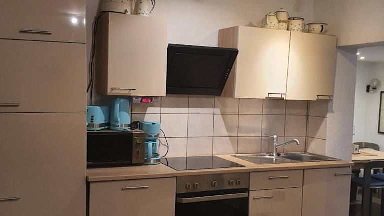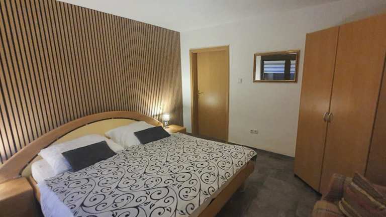 Die Ferienwohnung beinhaltet ein Schlafzimmer, ein Wohnzimmer mit Flachbild-TV, eine gut ausgestattete Küche mit Kühlschrank und Ofen sowie ein Badezimmer mit Dusche. Eine Terrasse mit Gartenblick lädt zum Verweilen ein. Handtücher und Bettwäsche können gegen Aufpreis bereitgestellt werden.