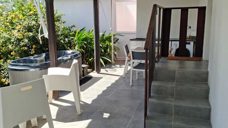 Die Unterkunft 5 min plage T2 mit Jacuzzi richtet sich an Rentner und junge Paare. Sie bietet einen schönen Garten und einen Balkon mit Gartenblick.