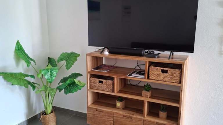 Die Ferienwohnung verfügt über 1 Schlafzimmer und 1 Badezimmer. Ausgestattet ist sie mit Bettwäsche, Handtüchern, einem Flachbild-TV, einem Essbereich sowie einer voll ausgestatteten Küche. Eine Terrasse mit Meerblick ergänzt das Angebot. Zudem steht eine Autovermietung in der Unterkunft zur Verfügung.