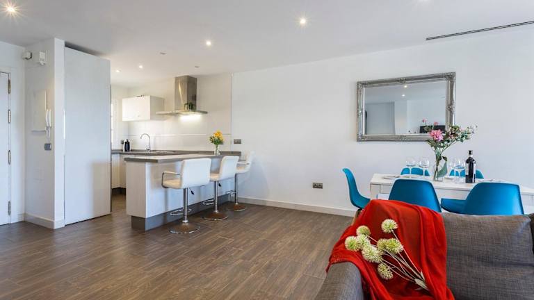 Die Unterkunft beinhaltet fünf Schlafzimmer und fünf Badezimmer mit Dusche und Haartrockner. Das Wohnzimmer sowie die voll ausgestattete Küche mit Kühlschrank und Kaffeemaschine sorgen für die nötige Bequemlichkeit. Zudem sind Handtücher und Bettwäsche vorhanden, und die Klimaanlage sorgt für eine angenehme Raumtemperatur.