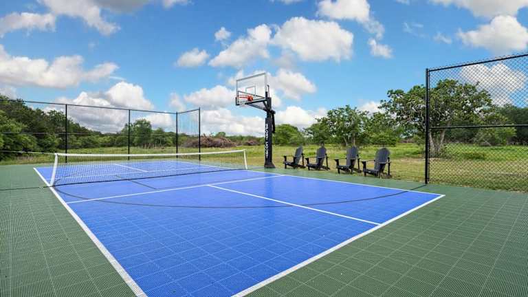 Das Ferienhaus bietet ein abwechslungsreiches Sport- und Freizeitangebot, darunter ein Pickleballplatz, Basketballmöglichkeiten, Tischtennis und einen Pool für Erfrischungen. Zudem steht ein Trampolin zur Verfügung. Wanderwege durch die Umgebung laden zu Erkundungen ein.