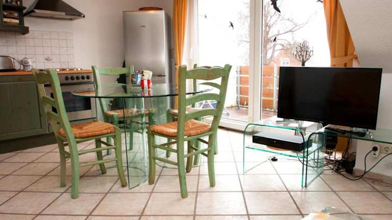 Die Ferienwohnung ist mit einer voll ausgestatteten Küche versehen, die es ermöglicht, eigene Mahlzeiten zubereiten. Die Ausstattung umfasst einen Kühlschrank, einen Ofen, eine Waschmaschine, eine Mikrowelle und eine Herdplatte. Für Zwischenmahlzeiten kann die Verfügbarkeit von Snacks oder ähnlichem geprüft werden.