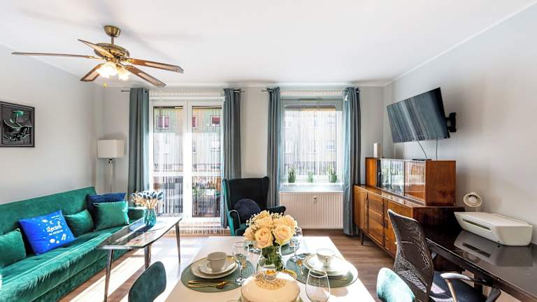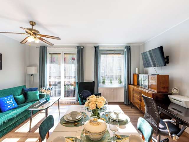 Die Unterkunft Lovely 2-Bed Apartment in Szczecin ist eine moderne Ferienwohnung, die mit einem Balkon und einem kostenlosen Privatparkplatz ausgestattet ist. Kostenloses Wifi steht ebenfalls zur Verfügung, um den Gästen eine Verbindung zur digitalen Welt zu ermöglichen. Die Ferienwohnung bietet Platz für eine Familie oder Freunde und ist geschmackvoll eingerichtet.