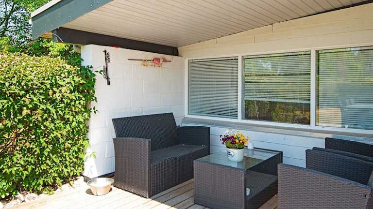 Das Ferienhaus bietet Platz für bis zu 6 Personen und besitzt drei Schlafzimmer. Zur Ausstattung gehören ein TV mit Kabelkanälen und eine gut ausgestattete Küche, die einen Kühlschrank und einen Geschirrspüler umfasst. Des Weiteren gibt es zwei Badezimmer mit einer Dusche.