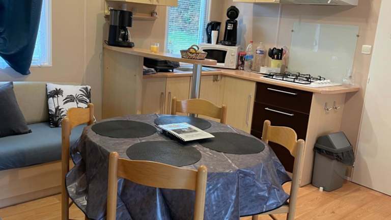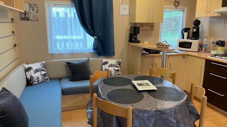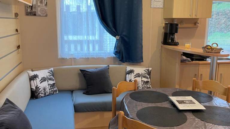 Die Unterkunft 600m de la plage - Mobilhome Loka 4 personnes camping Goelands bietet Übernachtungsmöglichkeiten mit einem Garten, einer Terrasse, einem Restaurant und einer Bar. Die Unterkunft zeichnet sich durch Meerblick aus und bietet sowohl kostenloses Wifi als auch eine Privatparkiermöglichkeit.