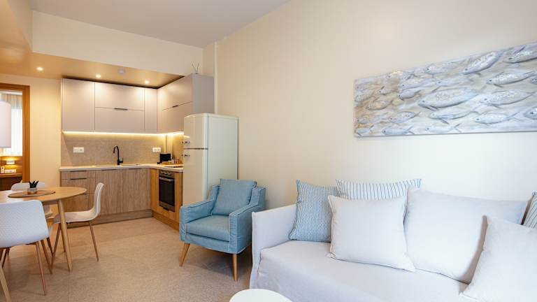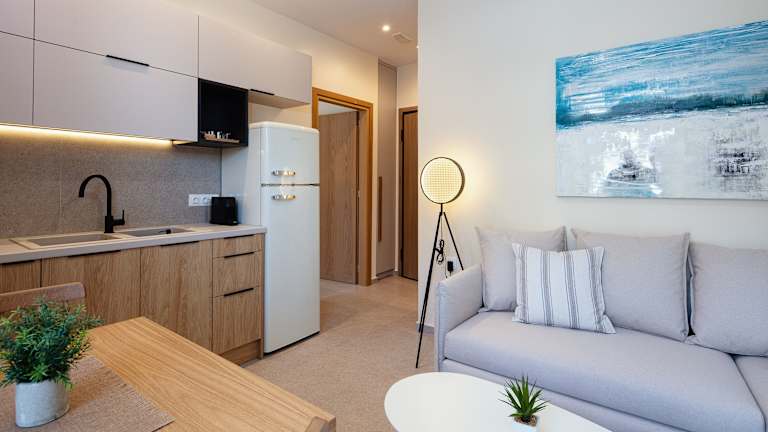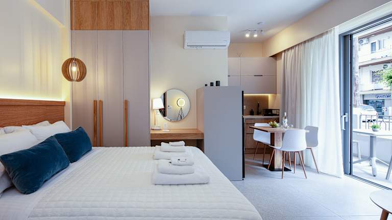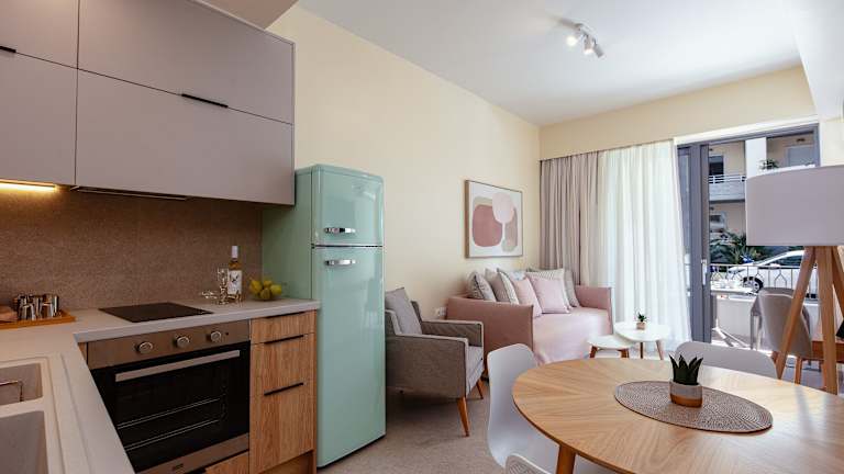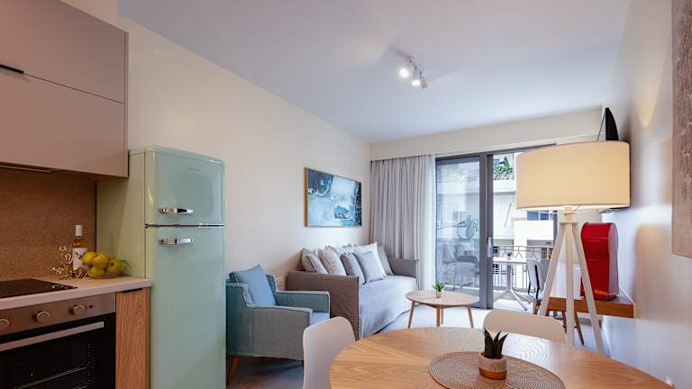 Die Apartments verfügen über eine Terrasse mit Stadtblick, einen gemütlichen Sitzbereich, einen Satelliten-Flachbild-TV und eine voll ausgestattete Küche. Diese ist unter anderem mit einem Kühlschrank, einem Ofen, einer Herdplatte, einem Toaster, einer Kaffeemaschine und einem Wasserkocher ausgestattet. Jedes Apartment hat zudem ein eigenes Badezimmer mit einer Dusche und kostenlosen Pflegeprodukten.