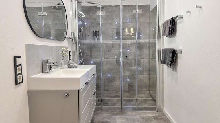 Das 80qm Luxus Apartment mit grosser Terrasse bietet eine komfortable und gemütliche Atmosphäre. Es verfügt über eine grosszügige Terrasse mit Gartenblick, ideal für entspannte Stunden im Freien. Die Unterkunft ist mit kostenloser Wifi-Verbindung ausgestattet und bietet nützliche Annehmlichkeiten wie einen Geldautomaten.