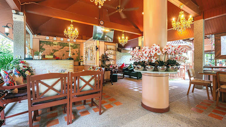 Die gastronomischen Einrichtungen des Resorts umfassen ein Restaurant, einen Frühstückssaal, ein Café und eine Bar. Die Unterkunft bietet Übernachtung mit Frühstück an, zudem können die Gäste aus einer Auswahl an thailändischen und westlichen Gerichte für das Mittag- und Abendessen wählen. Auf Wunsch können Speisen auch im Zimmer serviert werden. Eine Vielzahl an alkoholischen und alkoholfreien Getränken sind ebenfalls erhältlich.