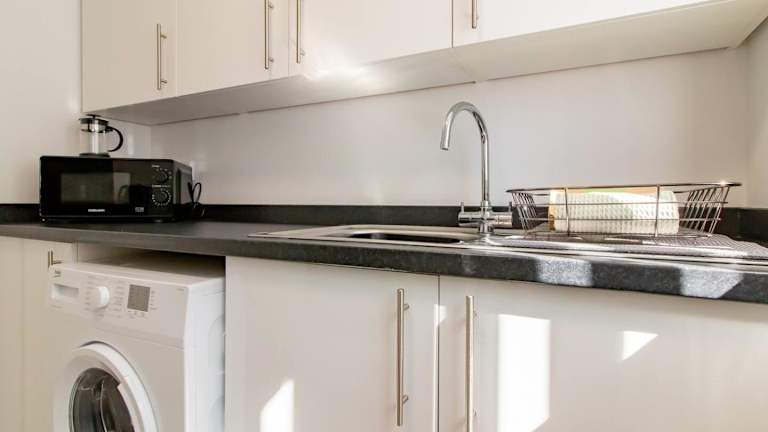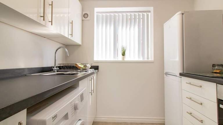 Die Ferienwohnung verfügt über 2 Schlafzimmer und eine voll ausgestattete Küche mit Kühlschrank und Ofen. Des Weiteren beinhaltet die Unterkunft 1 Badezimmer mit Dusche, Haartrockner und Waschmaschine. Handtücher und Bettwäsche werden bereitgestellt.