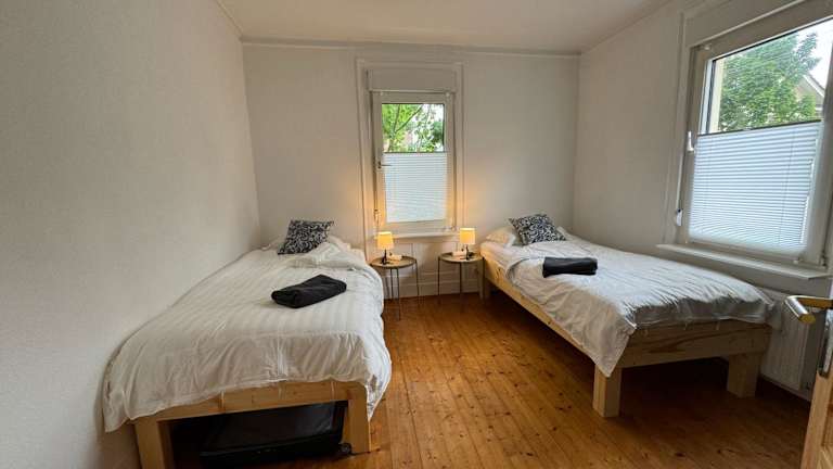 Die 90qm große 4-Zimmer-Wohnung - Apartment Friedrichstraße bietet eine geräumige und gut ausgestattete Ferienunterkunft. Die Wohnung verfügt über einen Garten, eine rund um die Uhr besetzte Rezeption und einen kostenlosen Privatparkplatz. Ein kostenloses WLAN steht den Gästen zur Verfügung. Diese Unterkunft ist privat geführt und eignet sich nicht für Junggesellen-/Junggesellinnenabschiede oder ähnliche Feierlichkeiten. Das Mindestalter für den Check-in ist 18 Jahre.