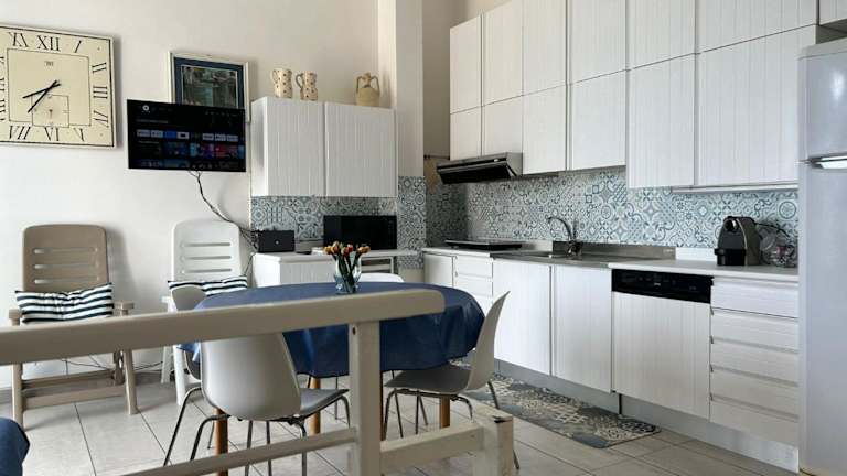 Die Ferienwohnung umfasst drei Schlafzimmer, ein Wohnzimmer sowie eine voll ausgestattete Küche mit Kühlschrank und Kaffeemaschine. Es gibt drei Badezimmer, ausgestattet mit Bidet und Dusche. Handtücher und Bettwäsche werden zur Verfügung gestellt. Die Wohnung ist klimatisiert und bietet Zugang zu einer Terrasse.
