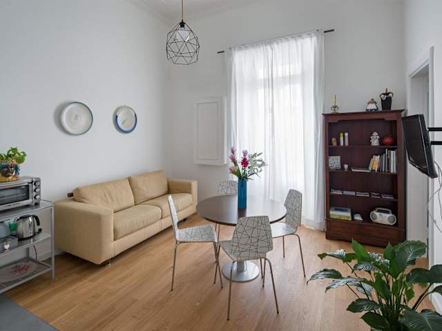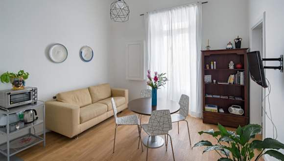 Die Unterkunft besteht aus zwei Schlafzimmern, einem Wohnzimmer und einer voll ausgestatteten Küche, die unter anderem mit einem Kühlschrank und einer Kaffeemaschine ausgestattet ist. Zudem stehen ein Badezimmer mit Bidet und Dusche zur Verfügung. Handtücher und Bettwäsche werden bereitgestellt.