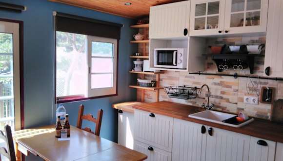 Das Ferienhaus verfügt über ein Schlafzimmer, ein Wohnzimmer und eine voll ausgestattete Küche mit Kühlschrank und Wasserkocher. Das Badezimmer ist mit einer Dusche und kostenlosen Pflegeprodukten ausgestattet. Handtücher und Bettwäsche sind ebenfalls vorhanden.