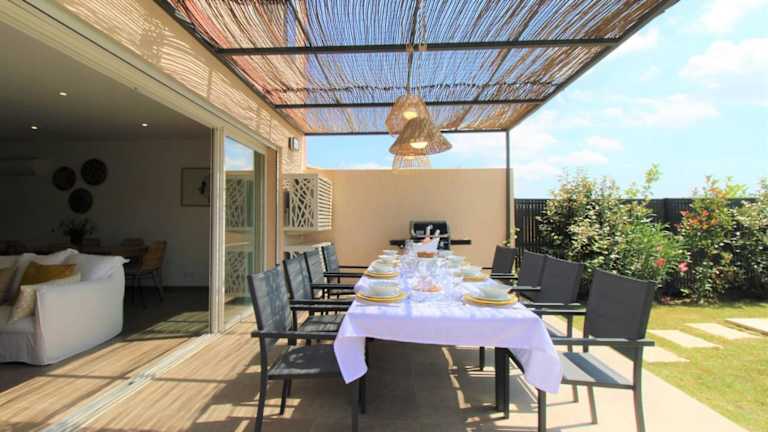 Die klimatisierte Villa verfügt über 4 Schlafzimmer, ein Wohnzimmer und eine voll ausgestattete Küche mit Kühlschrank und Kaffeemaschine. Zudem gibt es 3 Badezimmer, ausgestattet mit Dusche und Haartrockner. Auf Wunsch können Handtücher und Bettwäsche gegen Aufpreis bereitgestellt werden.