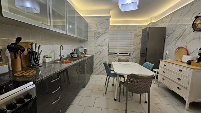 Die Ferienwohnung verfügt über zwei Schlafzimmer, zwei Badezimmer sowie Bettwäsche und Handtücher. Ein Flachbild-TV mit Kabelkanälen ergänzt die Ausstattung. Die voll ausgestattete Küche ermöglicht die Selbstverpflegung.