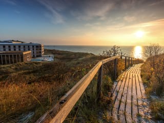Reisen Sie entweder bequem mit der Autofähre von von Rømø (Dänemark) nach List oder Sie nutzen die bekannteste Verbindung nach Sylt - den DB AutoZug SyltShuttle. Die Fährüberfahrt dauert ca. 40 Minuten und nach dem Verlassen der Fähre ist das A-ROSA Sylt gleich in der Nähe. Mit dem Autozug erreichen Sie die Insel in nur 35 Minuten. In Westerland angekommen, fahren Sie mit dem Auto in Richtung List und erreichen das Resort nach kurzer Zeit. Auch eine Anfahrt mit dem Zug oder ein Flug nach Sylt ist möglich.