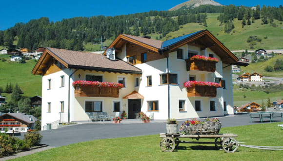 Unser Haus (Neubau – Eröffnung Juni 2007) befindet sich an einem Hektar Eigentumswiese mit einzigartigem Blick auf dem Langkofel, Fischburg, Sellastock und Geißlerspitzen. Sehr ruhige Lage, jedoch vom dem Einkaufszentrum nur wenige Gehminuten entfernt. Im Winter liegt unser Haus in direkter Nähe am Übungshang „Tieja“ mit Kinderland. Schibuseinstiegsmöglichkeit in direkter Nähe. Col- Raiser Gondelbahn nur 10 Gehminuten.