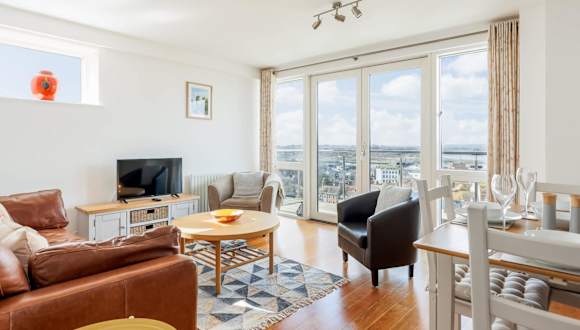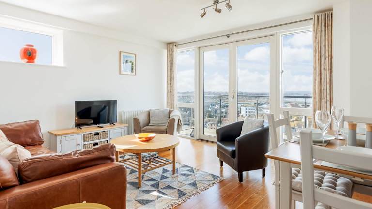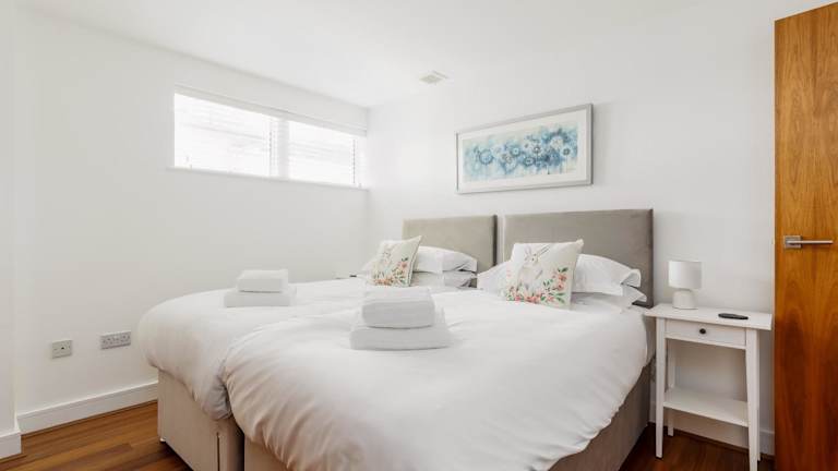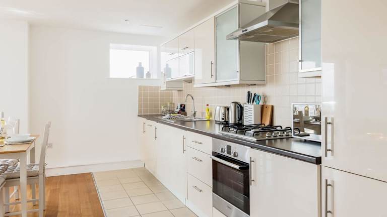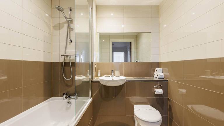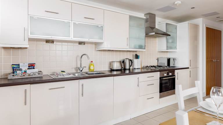 Die Unterkunft umfasst 2 Schlafzimmer, ein Wohnzimmer mit Flachbild-TV, eine gut ausgestattete Küche mit Kühlschrank und Geschirrspüler sowie 2 Badezimmer mit Dusche. Handtücher und Bettwäsche werden bereitgestellt.
