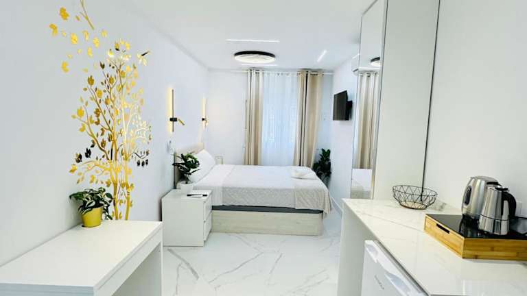 Die Unterkunft zeichnet sich durch ein Schlafzimmer und ein Badezimmer aus, das mit einem Bidet, einer Badewanne sowie kostenlosen Pflegeprodukten eingerichtet ist.