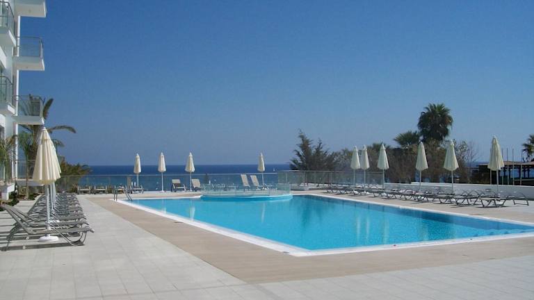 Das A209 Coralli Spa, Cyprus - Med View Studio bietet einen Außenpool, in dem Sie sich an warmen Tagen erfrischen können. Entspannen Sie auf der Terrasse und genießen Sie die Sonne. Die Umgebung bietet zudem viele Möglichkeiten für Outdoor-Aktivitäten wie Wandern und Tennis.