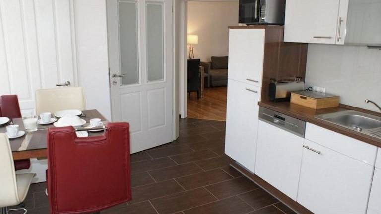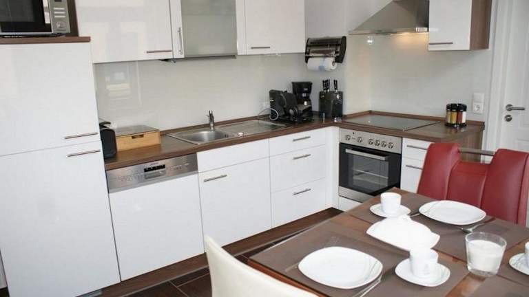 Die Ferienwohnung besteht aus einem separaten Schlafzimmer, einem Wohnzimmer und einer voll ausgestatteten Küche mit einem Geschirrspüler und einem Ofen. Ein Badezimmer ist ebenfalls vorhanden. Die Ausstattung wird durch einen Flachbild-TV ergänzt.