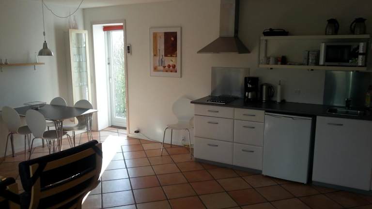 Die Ferienwohnung umfasst 1 Schlafzimmer, ein Wohnzimmer sowie eine voll ausgestattete Küche mit Kühlschrank und Kaffeemaschine. Das Badezimmer ist mit einer Dusche und einem Haartrockner ausgestattet. Für die Bequemlichkeit der Gäste werden Handtücher und Bettwäsche bereitgestellt.