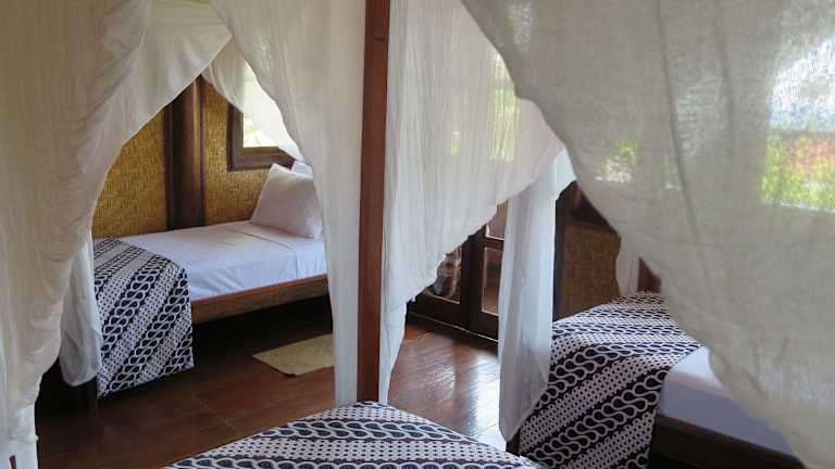 Das Aashaya Jasri Resort bietet charmante Bungalows und Villen im Landhausstil, die von einem üppigen Garten umgeben sind. Jeder Bungalow verfügt über eine Terrasse, auf der Sie die ruhige Atmosphäre genießen können. Die Zimmer sind entweder mit einer Klimaanlage oder einem Ventilator ausgestattet und verfügen über ein eigenes Bad mit Dusche und WC.