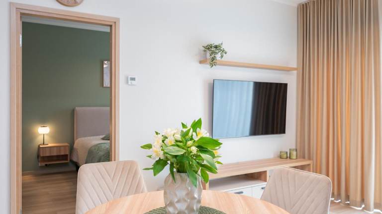 Die Ferienwohnung umfasst 1 Schlafzimmer sowie ein Wohnzimmer. Zudem verfügt sie über eine voll ausgestattete Küche mit Kühlschrank und Kaffeemaschine. Ein Badezimmer mit Dusche und kostenlosen Pflegeprodukten ist ebenfalls vorhanden. Handtücher und Bettwäsche werden bereitgestellt. Der Balkon lädt zum Entspannen ein.