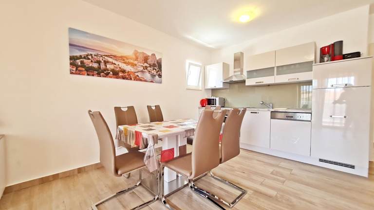 In den Apartments der AB Villa Podstrana haben Sie die Möglichkeit, Ihre eigenen Mahlzeiten zuzubereiten. Die voll ausgestattete Küche bietet Ihnen alle notwendigen Geräte, wie einen Kühlschrank, einen Backofen, einen Geschirrspüler, eine Mikrowelle, ein Kochfeld und einen Wasserkocher. So können Sie Ihre Lieblingsspeisen ganz nach Ihrem Geschmack zubereiten. Wenn Sie jedoch lieber auswärts essen möchten, finden Sie in der Umgebung viele Restaurants, die eine große Auswahl an Gerichten anbieten.