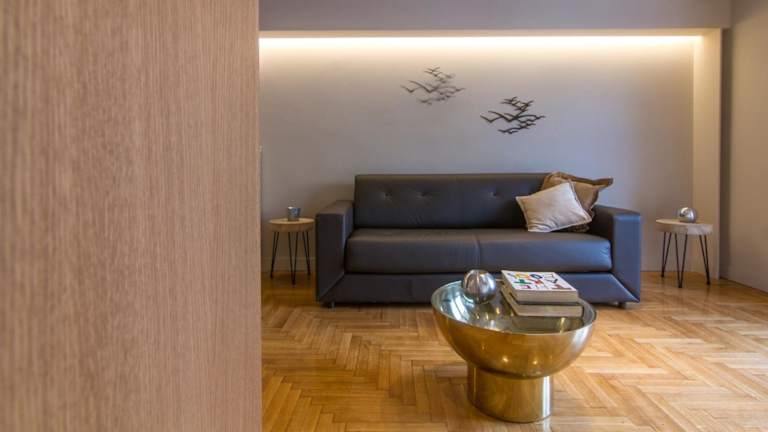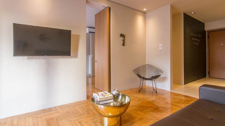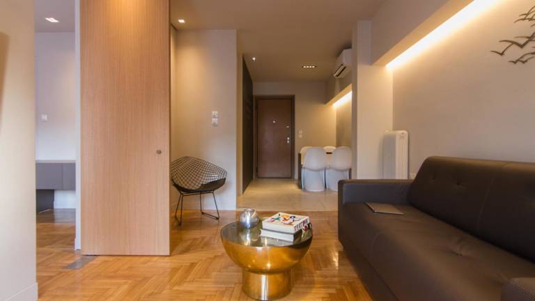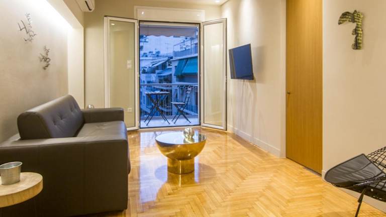 Das ABA Junior Apartment Veikou street bietet einen Stadtblick von einem Balkon. Es handelt sich um eine Ferienwohnung mit Klimaanlage, die über eine moderne Ausstattung und verschiedene Annehmlichkeiten verfügt.