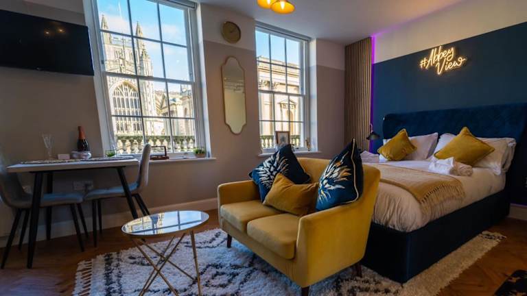 Die Ferienwohnung Abbey View studio central Bath bietet ein heimeliges Ambiente und ist ideal für Gäste, die das Stadtleben von Bath erleben möchten. Sie verfügt über kostenloses Wifi und bietet einen wunderbaren Stadtblick.
