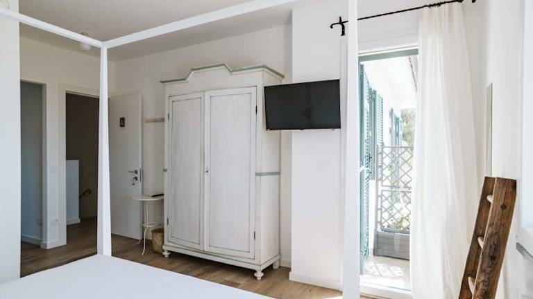 Die Zimmer sind ausgestattet mit Klimaanlage, einem Schreibtisch, einem Flachbild-TV, einem eigenen Badezimmer, Bettwäsche, Handtüchern sowie einem Balkon mit Meerblick. Ein Kleiderschrank und ein Wasserkocher sind ebenfalls vorhanden.