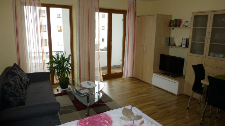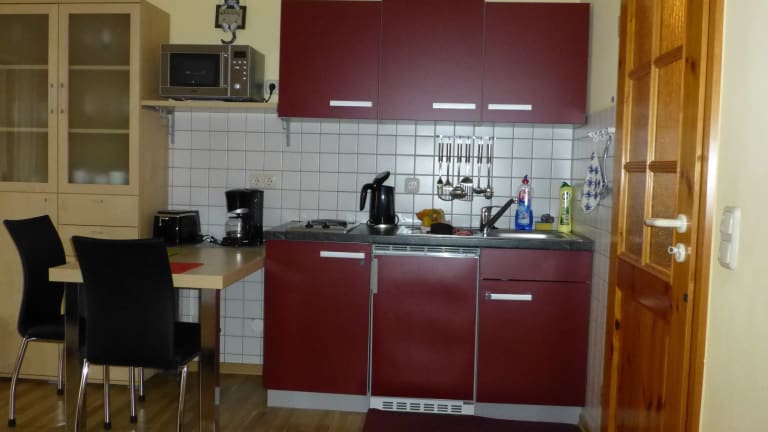 Die Ferienwohnung ist mit einem Schlafzimmer und einem Badezimmer ausgestattet. Zur weiteren Ausstattung gehören Bettwäsche, Handtücher, ein Flachbild-TV mit Satellitenkanälen, ein Essbereich und eine voll ausgestattete Küchenzeile. Zudem verfügt die Unterkunft über einen Balkon mit Blick auf den Garten.