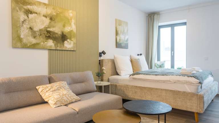 Die Apartments sind mit einem Flachbild-TV und einem eigenen Badezimmer mit Dusche ausgestattet. Eine Küchenzeile mit Kühlschrank und Geschirrspüler sorgt für zusätzliche Bequemlichkeit. Einige Wohneinheiten bieten zudem eine Terrasse und/oder einen Balkon mit Blick auf die Stadt oder die Berge.