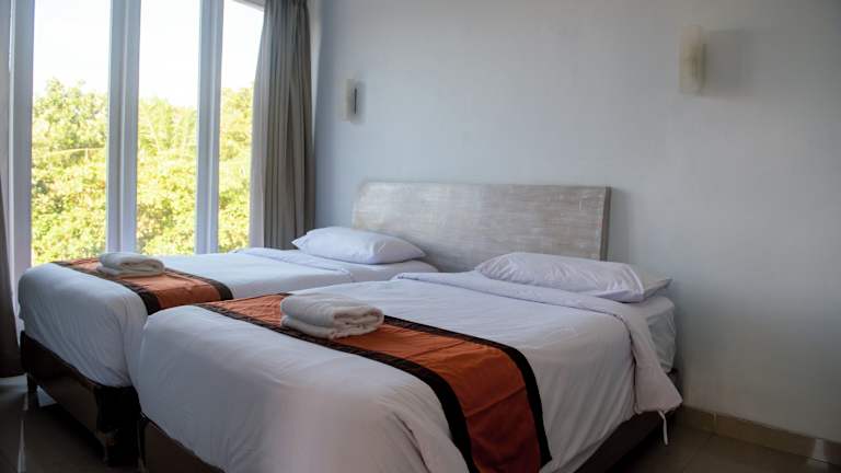 Die Zimmer sind mit Klimaanlage, Ventilator und einem Balkon oder einer Terrasse ausgestattet, die einen Blick auf den Garten bieten. Zur Einrichtung gehören ein Doppelbett oder Kingsize-Bett, ein Safe, ein Schreibtisch, ein Minikühlschrank sowie eine Tee-/Kaffeemaschine. Die Badezimmer sind mit Dusche und Badewanne ausgestattet, und Hausschuhe sowie Kosmetikartikel sind vorhanden.