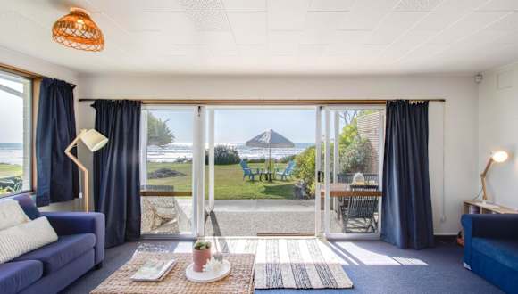 Die Unterkunft Absolute Beachfront - Waimarama Holiday Home bietet einen Garten und eine heimelige Atmosphäre. Sie eignet sich ideal für einen entspannenden Aufenthalt am Strand.