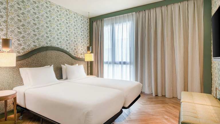 Das AC Hotel Ciudad de Sevilla bietet eine elegante Kombination aus dem Charme des frühen 20. Jahrhunderts und modernen Annehmlichkeiten. Es verfügt über 86 Zimmer und 5 Einzelzimmer, die über einen Aufzug erreichbar sind. Zu den Einrichtungen gehören eine rund um die Uhr besetzte Rezeption, ein Garten, ein TV-Raum, ein Spielzimmer sowie ein Business-Center. WLAN steht kostenfrei zur Verfügung. Es gibt behindertengerechte Einrichtungen, und das Parken ist in einer Garage oder auf einem Parkplatz (gegen Gebühr) möglich. Die Unterkunft bietet zudem Leistungen wie Autovermietung, medizinische Betreuung und Zimmerservice an.
