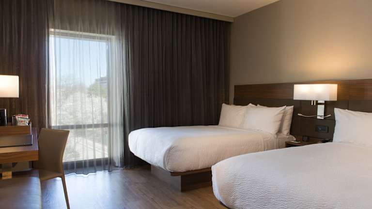 Die Zimmer sind mit einer Klimaanlage und Heizung ausgestattet. Sie verfügen über ein Kingsizebett sowie ein Sofabett. Zur weiteren Ausstattung gehören ein Safe, ein Schreibtisch, ein Kühlschrank, eine Mikrowelle sowie eine Tee-/Kaffeemaschine. Ein Bügelset, Telefon, Sat-TV und gratis Wifi sind ebenfalls vorhanden. Die Badezimmer sind mit einer Dusche, einer Badewanne und Kosmetikartikeln ausgestattet.