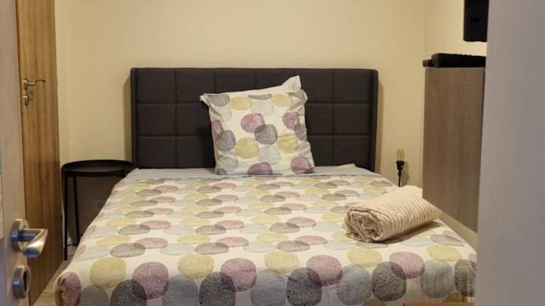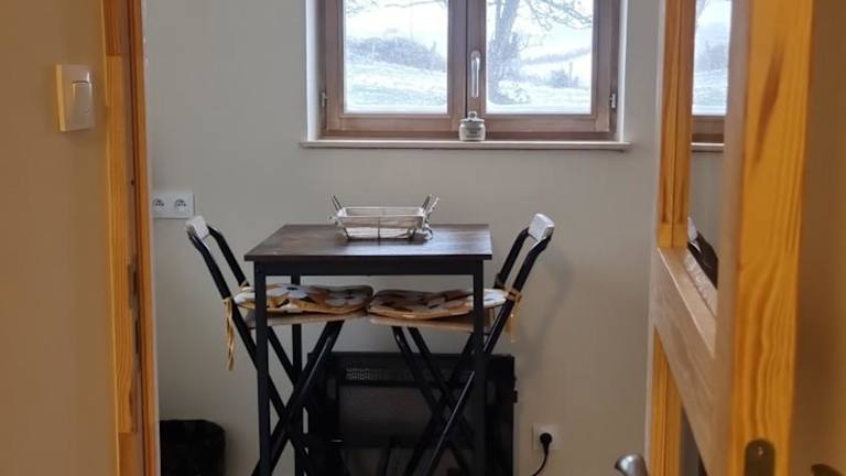 Die Ferienwohnung besteht aus einem Schlafzimmer, einem Wohnzimmer sowie einer voll ausgestatteten Küchenzeile mit Kühlschrank und Kaffeemaschine. Es gibt ein Badezimmer mit Dusche und kostenlosen Pflegeprodukten. Handtücher und Bettwäsche werden zur Verfügung gestellt.