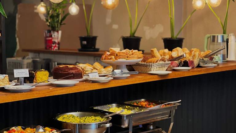Ein reichhaltiges Frühstücksbuffet wird morgens angeboten. Zudem steht eine Bar zur Verfügung, in der die Gäste sich entspannen können. Das Hotel bietet auch einen Zimmerservice sowie eine Café-Ecke für Snacks und Erfrischungen.
