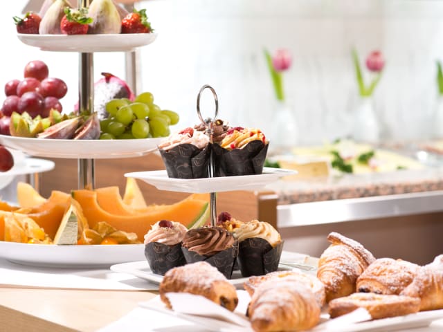 Zum Verpflegungsangebot zählt ein Frühstück à la carte. Außerdem sind vegetarische,diabetiker Speisen bestellbar. Rund um die Unterkunft gibt es einige Gaststätten, zum Beispiel das Restaurant Pascha und das Prinz Heinrich.