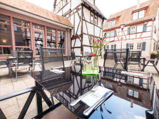 Lage & Umgebung Die malerische Stadt Heppenheim an der Bergstrasse ist Kreis-, Wein- und Festspielstadt mit rund 26.000 Einwohnern. Ein besonderer Anziehungspunkt ist die historische Altstadt mit ihren schönen mittelalterlichen Fachwerkhäusern und zahlreichen urigen Gasthäusern, die zum verweilen einladen. Die Sehenswürdigkeiten sind die historische Altstadt mit einem der schönsten Marktplätze Deutschlands, das Fachwerk-Rathaus, der Marienbrunnen, die Liebig-Apotheke, der Kurmainzer Amtshof, die Kirche St. Peter, die Starkenburg und der Erlebnispfad Wein und Stein. Nähere Infos bekommen Sie an unserer Rezeption oder bei der Tourismus-Information der Kreisstadt Heppenheim. Die wichtigsten Events sind der Bergsträßer Weinmarkt Ende Juni, die Gassensensationen Anfang Juli, die weltbekannten Festspiele mitte Juli bis Anfang September und die Stadtkirchweih am 1. Sonntag im August. Zudem können Stadführungen und Laternenführungen auf Anfrage gebucht werden. In der Umgebung gibt es zahlreiche Freizeitmöglichkeiten wie z.B. schöne Rad- und Wanderwege an der Bergstrasse oder im angrenzenden Odenwald. Umfeld und Entfernungen Festspiele Heppenheim - 0,1 km Historischer Marktplatz - 0,2 km Bahnhof - 1 km Starkenburg - 1,8 km Autobahn A5 - 2,6 km UNESCO Weltkulturerbe Kloster Lorsch - 6 km Heidelberger Schloß - 35 km Flughafen FRA - 54 km