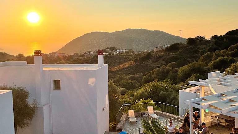 Willkommen in der ACHLADA – MOURTZANAKIS Residence ÖKOTOURISMUS-HOTEL in Achlada, Insel KRETA – GRIECHENLAND Die Mourtzanakis Residence bietet einen Aufenthalt in einer Reihe von 4 unabhängigen Villen und 3 Studios/Apartments in Achlada, Heraklion, Kreta. Unsere Residenz ist nur 4 km von der Bushaltestelle der kretischen Nationalstraße (E75), 18 km vom Stadtzentrum von Heraklion und seinem Hafen entfernt, während der Flughafen 23 km entfernt ist. Nicht zuletzt liegt unser Ort 7 km von den Sandstränden von Agia Pelagia entfernt
