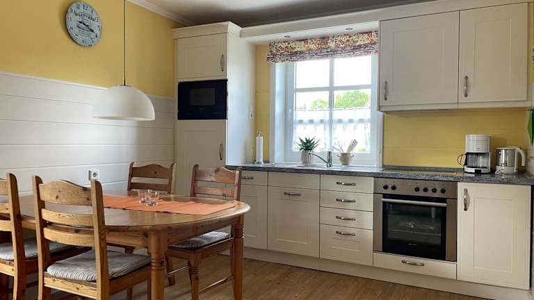 Die Ferienwohnung im Erdgeschoss beinhaltet 1 Schlafzimmer und ist mit einem TV mit Satellitenkanälen ausgestattet. Des Weiteren bietet die Küche Annehmlichkeiten wie Kühlschrank, Geschirrspüler, Waschmaschine, Ofen und Mikrowelle.