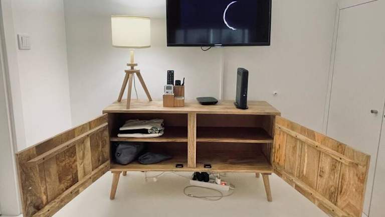 Das Ferienhaus verfügt über ein Schlafzimmer, ein Wohnzimmer und eine voll ausgestattete Küche mit Kühlschrank und Kaffeemaschine. Zudem gibt es ein Badezimmer mit einer Dusche und einem Haartrockner. Handtücher und Bettwäsche werden zur Verfügung gestellt.
