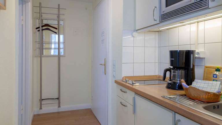 Die Wohnung ist mit einer voll ausgestatteten Küche sowie einer Kaffeemaschine ausgestattet, aber es werden keine näheren Informationen zu Verpflegungsmöglichkeiten angeboten.
