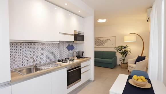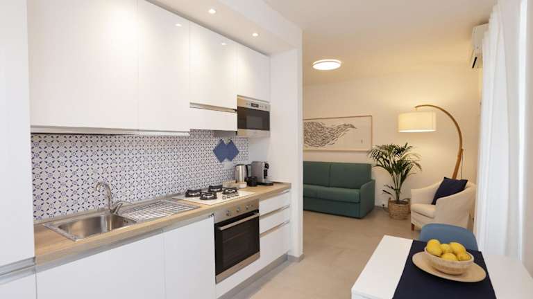 Die Ferienwohnung verfügt über 2 Schlafzimmer und 2 Badezimmer. Die Ausstattung umfasst Bettwäsche, Handtücher, einen Flachbild-TV mit Kabelkanälen, einen Essbereich sowie eine voll ausgestattete Küche. Die Terrasse bietet einen herrlichen Meerblick, was den Aufenthalt zusätzlich bereichert.
