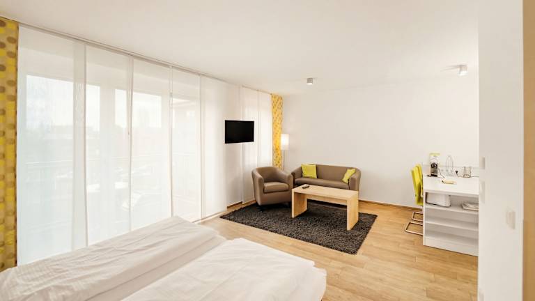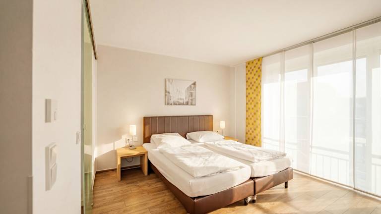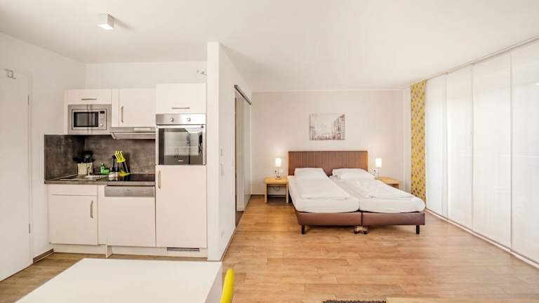 Die Zimmer sind mit einer vollständigen Küche ausgestattet, welche ein Kochfeld, einen Kühlschrank, eine Mikrowelle und einen Geschirrspüler umfasst. Zu weiteren Annehmlichkeiten zählen ein Doppelbett, ein Föhn, ein TV-Gerät mit Satelliten-/Kabelempfang, sowie ein Badezimmer mit Dusche oder Badewanne und Haartrockner. Einige Zimmer sind rollstuhlgerecht eingerichtet und bieten barrierefreie Badezimmer. Zudem sind Nichtraucherzimmer und allergikerfreundliche Zimmer verfügbar.