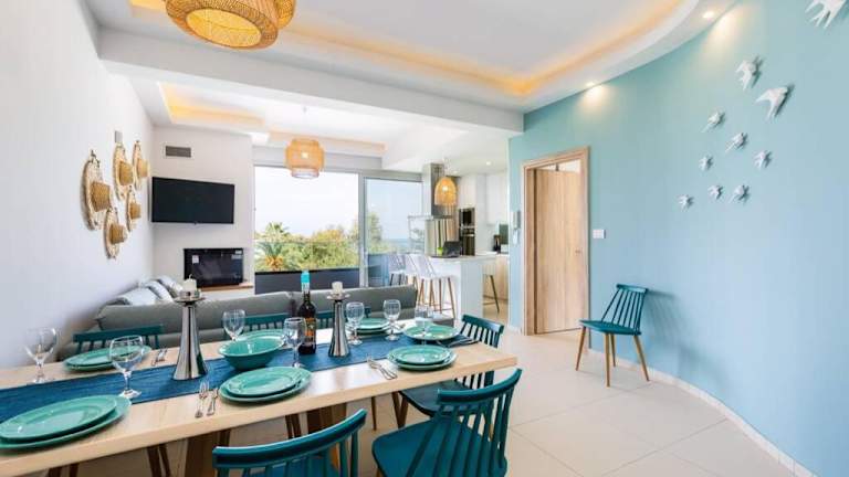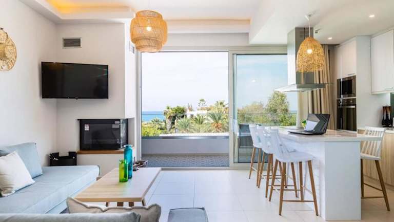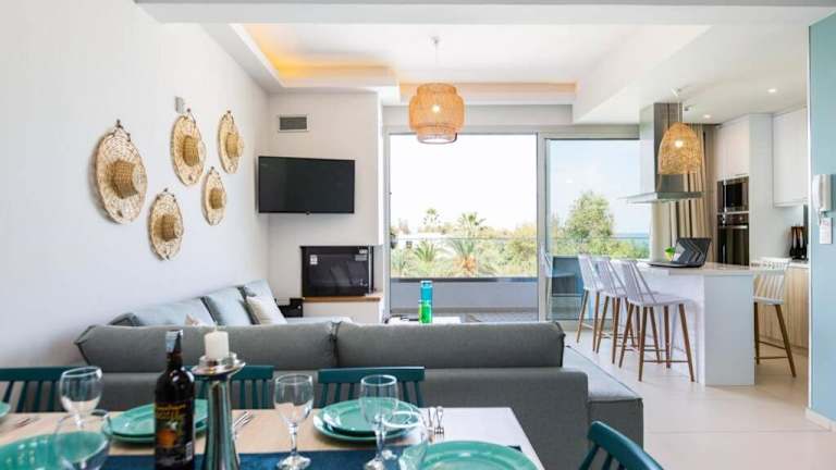 Die Unterkunft befindet sich in Adelianos Kampos, nur ca. 400 m vom Strand entfernt. Die Umgebung bietet zusätzliche Strände, darunter der Strand Platanes, der 500 m entfernt ist, sowie der Strand Rethymno, der 2 km von der Unterkunft liegt. Die Lage ermöglicht den Gästen schöne Ausblicke auf das Meer.